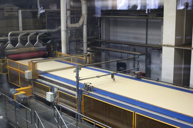 Panel boards are made from a mix of chipped roundwood, sawmill arisings and recycled wood. Wood chippings are processed in large factories, combined with resins and pressed into sheets. These are then cut for use in everything from kitchen cabinets to flooring.