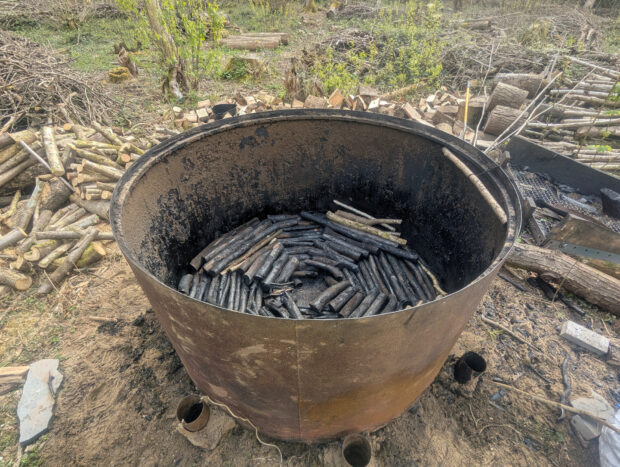 Charcoal can be made from most woody material, with high-quality charcoal being made from hardwoods like alder, oak, birch, hornbeam and hazel, often from coppiced wood. It’s especially useful during coppice restoration, when harvested material may not yet be suitable for other products.