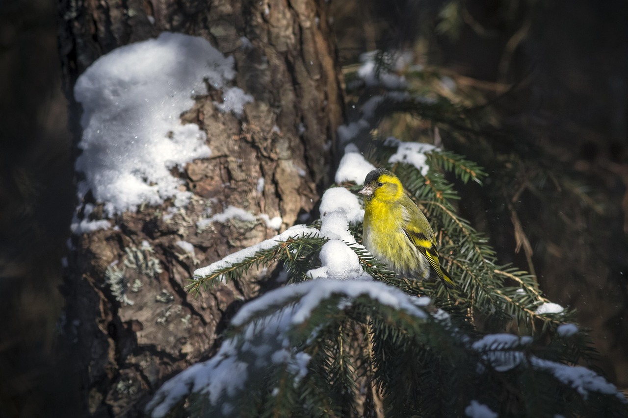 Look up into the bare canopy and you'll find another community exploiting a different resource: tree seeds. Listen for the tinkling calls of finches and watch for small, acrobatic birds on seed-bearing trees. Alders, birches, pines and beeches all produce winter food for specialist feeders.