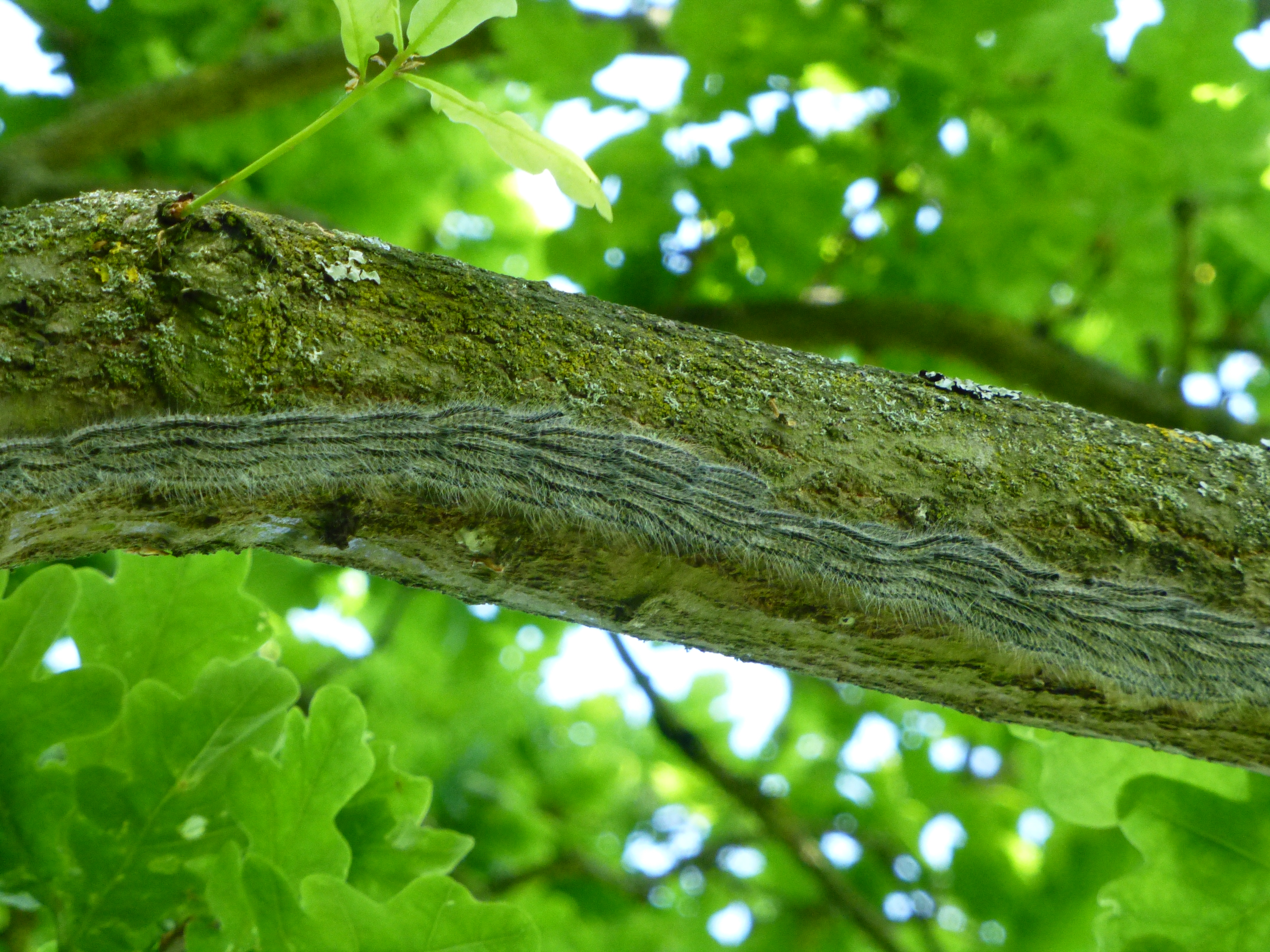 Native to central and southern Europe, the oak processionary moth (Thaumetopoea processionea) gets its name from the characteristic way their caterpillars march nose-to-tail in a hungry procession along oak trunks and branches. These caterpillars feed on oak leaves, sometimes causing alarming defoliation to host trees, and leaving them vulnerable to other pests, diseases or drought.
